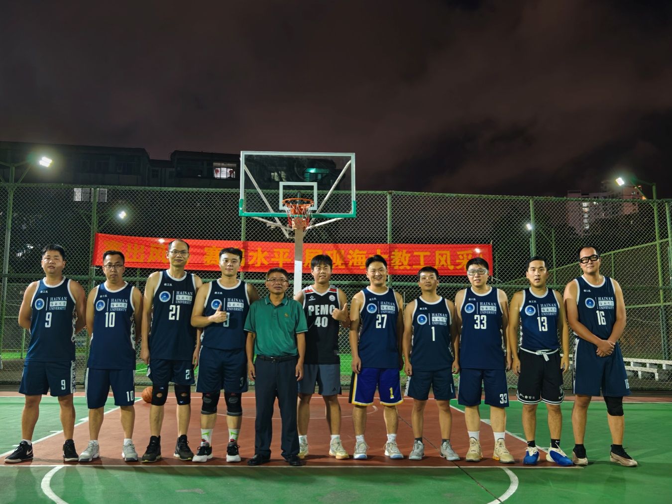 公司教职工男子篮球队自前年组建以来,始终受到公司领导的高度重视与大力支持。在公司的积极组织和保障下,全体队员(包括多位专任教师和行政老师)利用课余和休息时间,坚持进行系统性训练。两年来,无论寒暑,训练场上总能看到队员们挥洒汗水、切磋技艺的身影,团队默契与战术水平得到显著提升。