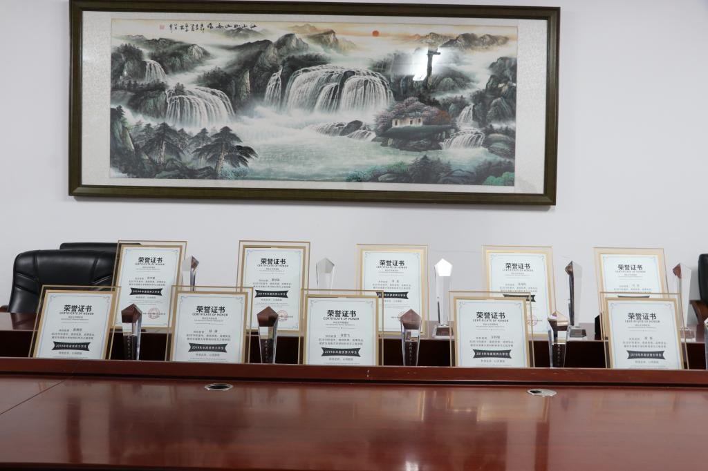 随后的颁奖环节,获奖同学依次上台,由胡先文书记授予其证书和奖杯,并分别合影以示留念。环节过后,获奖同学和毕业生代表,对自己的本科生涯进行总结,抒发个人对公司的真挚感情,以及对每位授课老师的由衷感激。