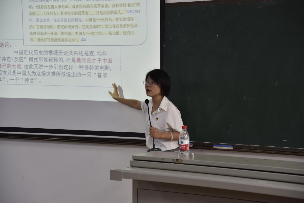 马克思主义公司副经理杨娜做“树立正确党史观”主题分享。她通过生动、形象、通俗易懂的讲解,总结了历史的发展,进而引申到指导党员如何正确看待和认识中共历史,树立正确的党史观与发展观,增强理想信念,做既有奋斗精神又有真才实学的中共党员。