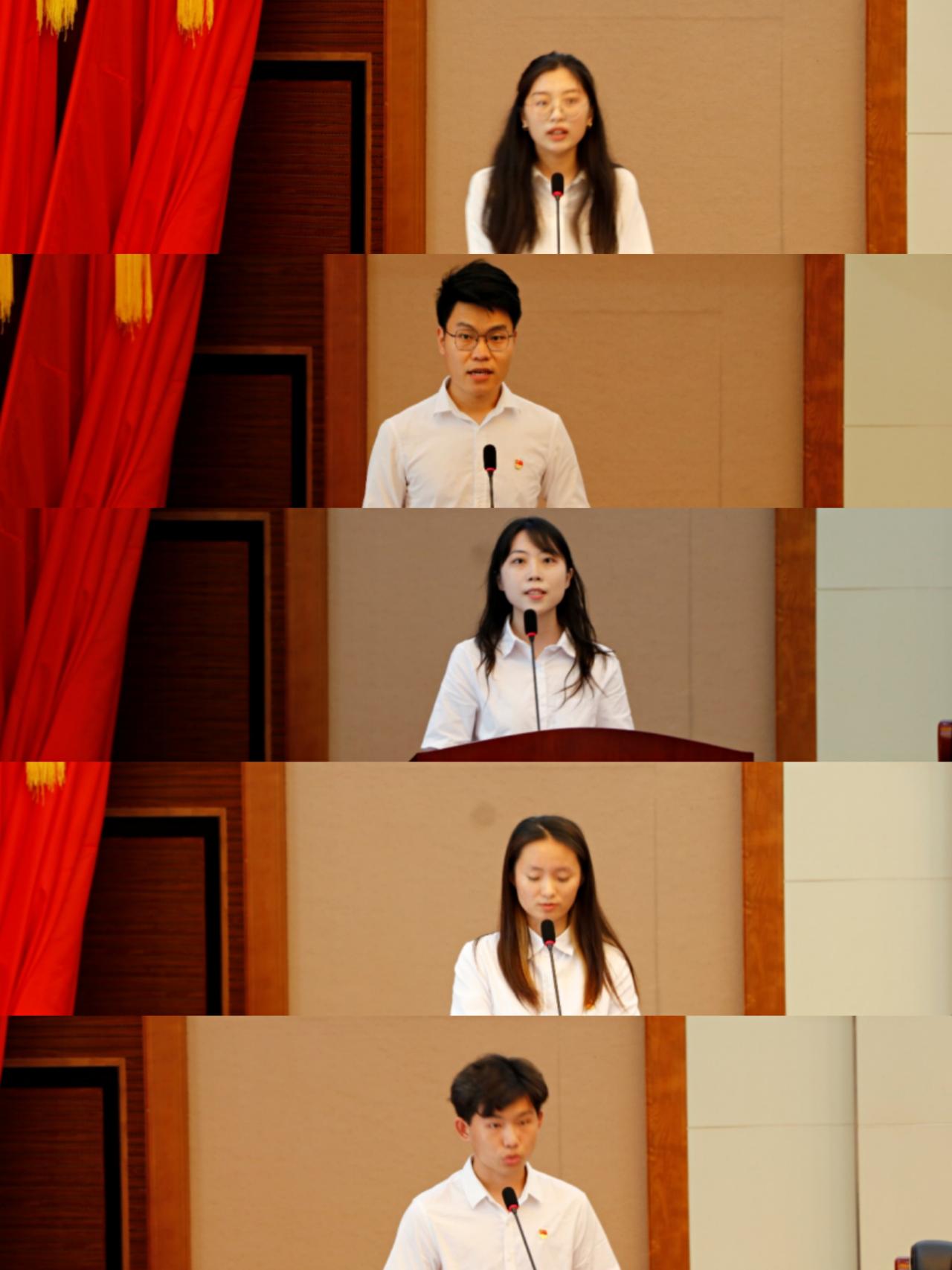 颁奖结束后由团学骨干代表王玉洁同学、优秀研究生代表武睿同学、发表高水平文章代表孙文妍同学、创新创业代表程钰倩同学、公司2021年度优秀老员工代表刘利民同学依次发言。还有优秀老员工孔凡厚同学,通过视频的方式和同学们交流。他们展现了“材料”青年勤勉学习的精神风貌,生动演绎了一名青年学子的责任与使命。