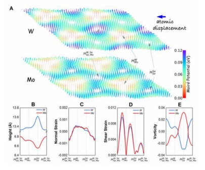 bw西汉姆联耿文通教授与日本国家材料科学研究所、西安理工大学、北京科技大学和中国科公司力学研究所等单位合作,研究了晶格高度匹配的WSe2/MoSe2旋角双层材料中的莫尔电势和层间范德瓦尔斯相互作用引起的原子位移之间的关系,发现原子位移涡量是莫尔势的主要来源。