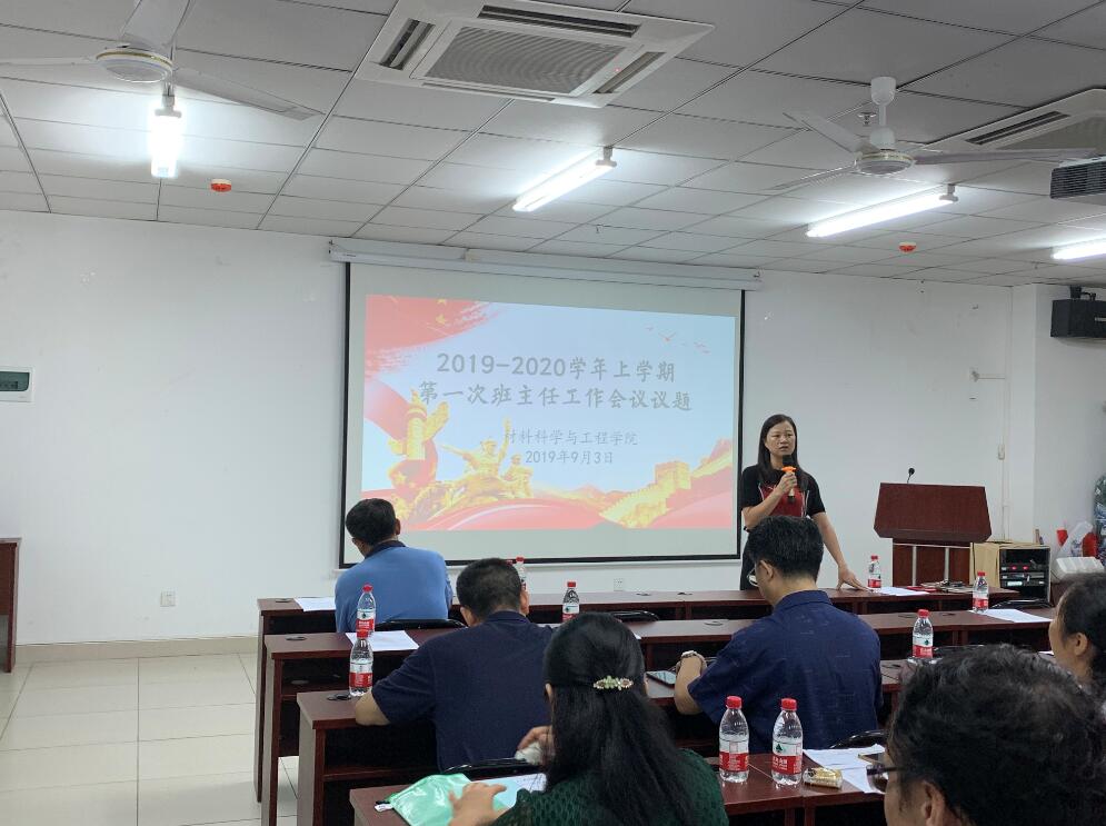 分管员工工作的副处级辅导员周郭军主要围绕以下几个方面展开工作部署:一是新生接待、入学教育、军训;二是2020届毕业生的就业工作;三是新中国成立70周年系列活动;四是班主任工作总结和新学年的工作计划。