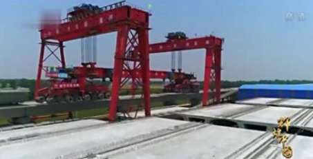 就是这个,中国自主研发的新型运架一体机——天车,完成一榀900吨的箱梁架设只需要3个小时,这是目前全世界最快的架设速度。