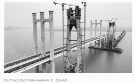 9月15日,世界桥梁领域又一里程碑式工程——福(州)至厦(门)高速铁路泉州湾大桥主塔正式封顶。