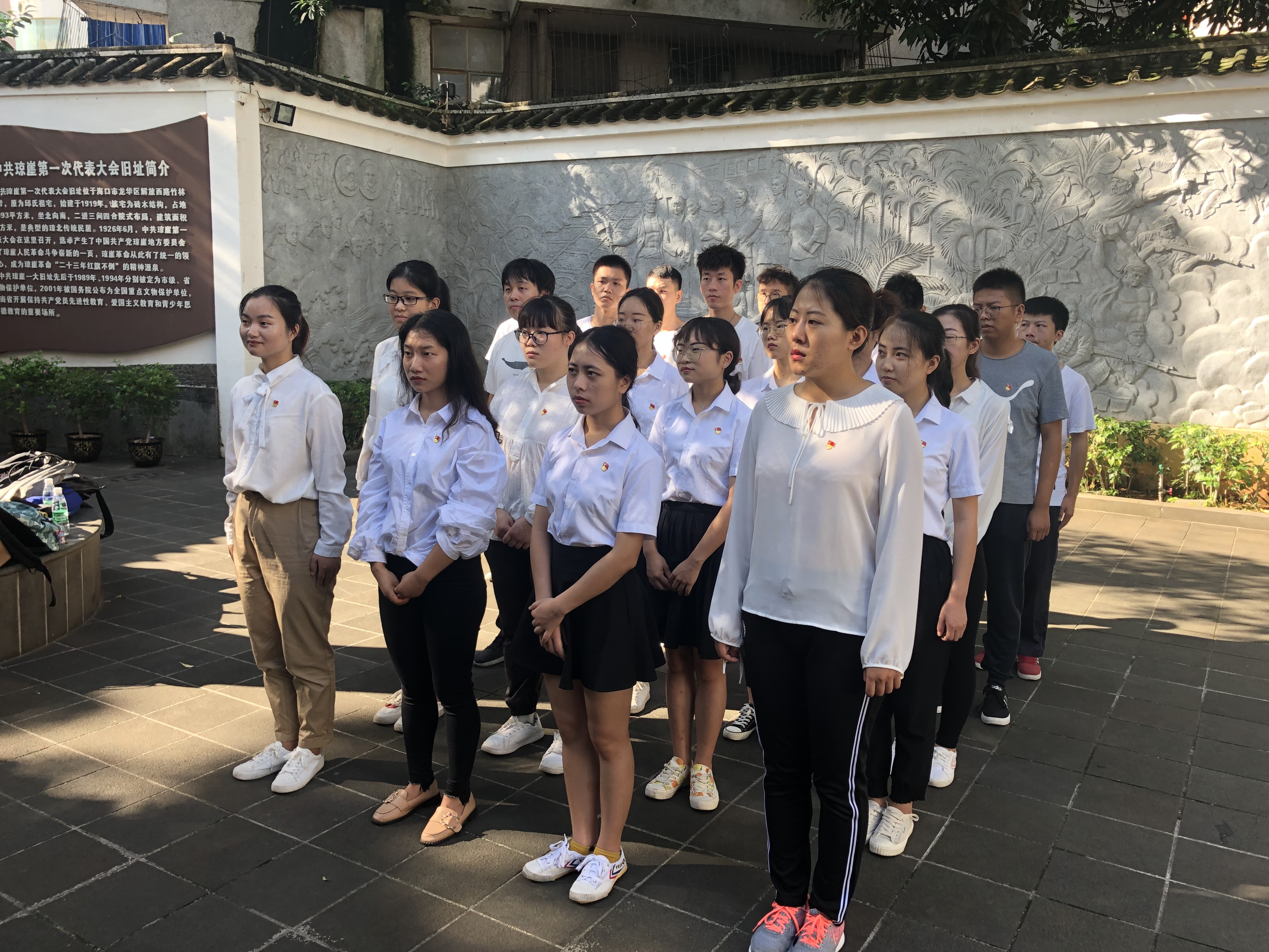 为重温琼崖革命史,感受先烈革命情怀,加强党员们对琼崖人民的革命历程的认识,6月18日上午,公司新发展的预备党员在中共琼崖第一次代表大会旧址开展入党宣誓活动。在分管公司员工工作的副处级辅导员周郭军老师和党务工作负责人王曦老师的带领下,全体成员集体参观了一大会址。