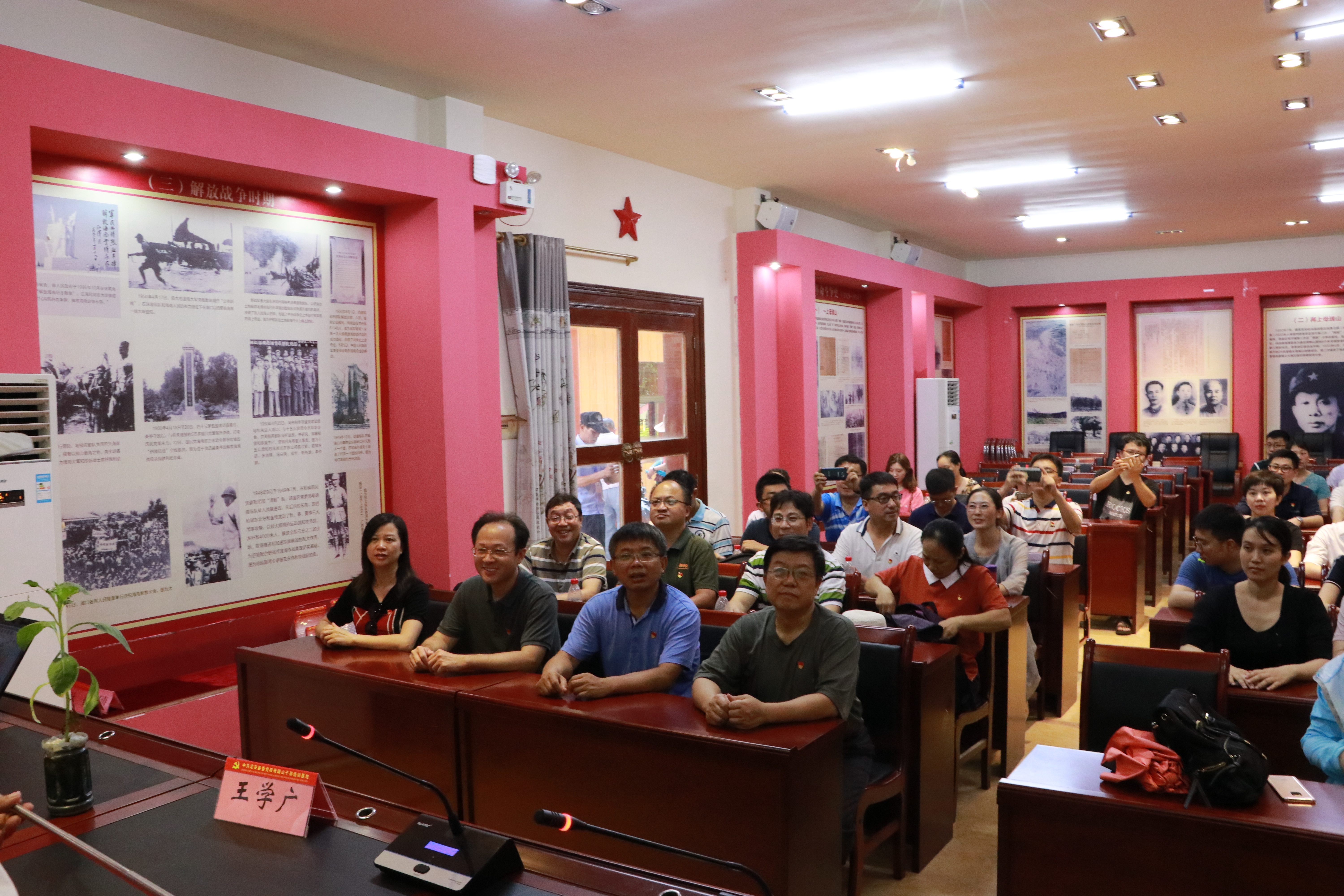 母瑞山位于定安县南部,是琼崖革命二十三年红旗不倒的“摇篮”,是琼岛的“井冈山”。在两次国内革命战争时期,琼崖将士发扬艰苦奋斗的革命精神,保存革命火种和力量,为全国革命的胜利和海南的解放立下了不朽的功勋。全体党员抵达母瑞山革命根据地纪念园区,自觉到王文明、冯白驹的铜像前进行默哀和三鞠躬仪式,并集体重温入党誓词仪式。