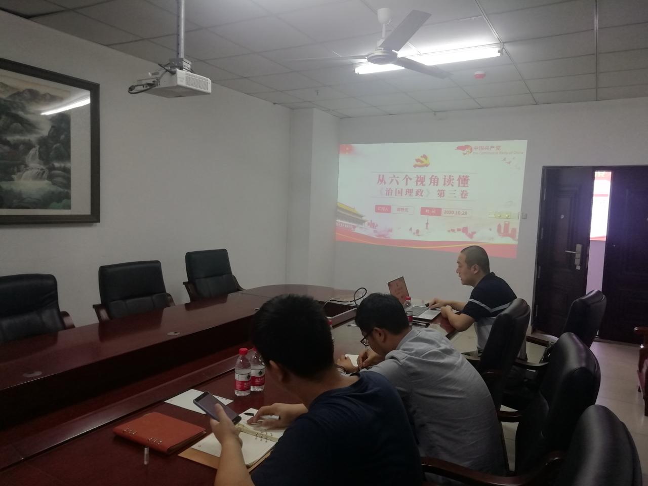 《习近平谈治国理政》第三卷,全景记录了党的十九大以来以习近平同志为核心的党中央统揽“四个伟大”、推动党和国家各项事业取得新的重大进展的伟大实践,集中展示了马克思主义中国化的最新成果,是与第一卷、第二卷一脉相承的全面系统反映习近平新时代中国特色社会主义思想的最新权威著作。大会上,支部书记文峰同志号召全体党员务必要增强学习理论的政治自觉性,学深悟透这部经典著作,推动学习贯彻习近平新时代中国特色社会主义思想往深里走、往心里走、往实里走,以理论学习的新高度,开创党支部工作的新局面。